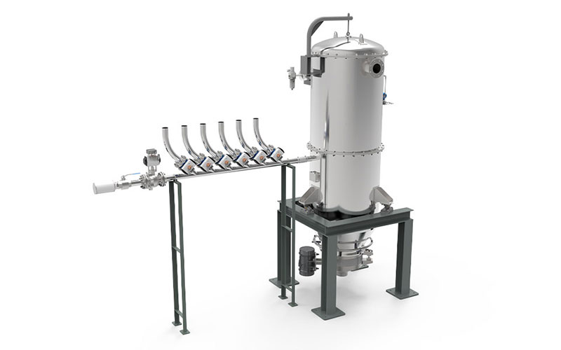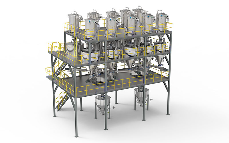 The multi-component material vacuum metering system consists of a feeding system, a negative pressure conveying system, a vacuum hopper, and a metering system. Only one device is needed to meet the needs of conveying, measuring, and batching various types of powders and granules. Meet the mixing requirements from centralized to distributed, and design targeted according to customer needs.